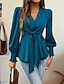 نسائي بلوزة قمم متأنق لون الصلبة سهل أنيق عتيق استوائي كم طويل غير متماثل قمصان عادية عمل مناسب للبس اليومي مناسب للعطلات مكشكش بقع ثنيات رمادي الخريف الشتاء