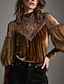 نسائي مخمل بلوزة قمم متأنق قمصان الدانتيل سهل أنيق يوميا سيدات كم طويل رقبة عالية قمصان عادية عمل مناسب للبس اليومي مناسب للعطلات دانتيل مكشكش Buttons بني الخريف الشتاء