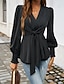 نسائي بلوزة قمم متأنق لون الصلبة سهل أنيق عتيق يوميا كم طويل V رقبة قمصان عادية عمل مناسب للبس اليومي مناسب للعطلات محاك بربطات مكشكش تونك أسود وردي بلاشيهغ نبيذ أخضر الخريف الشتاء