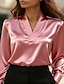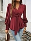 نسائي بلوزة لون الصلبة أنيق كاجوال كم طويل V رقبة قمصان عادية مناسب للبس اليومي مكشكش Buttons أسود أحمر أرجواني بني رمادي غامق الربيع الخريف الشتاء