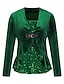 نسائي بلوزة قمم متأنق سهل أنيق عتيق يوميا كم طويل رقبة مربعة قمصان عادية عمل مناسب للبس اليومي مناسب للعطلات ترتر مكشكش بقع أسود أخضر رمادي الخريف الشتاء