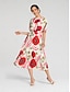 نسائي انثى فستان مطبوع أسود أبيض نصف كم ورد مرونة الخصر طبع الصيف الربيع للربيع والصيف باتو رقبة دائرية أنيق مريح XS S M