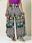 بنطلون واسع الساق من الساتان بطبعة زهور هندسية، مناسب للعطلات غير الرسمية