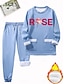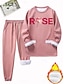 طقم ملابس رياضية مكون من قطعتين، بلوفر مبطن بالصوف الدافئ اليومي للنساء، طقم بنطلون بأكمام طويلة ورقبة دائرية وطباعة حروف ورباط، كاجوال يومي، أسود، وردي غامق، أزرق، مناسب للخريف، مناسب للارتداء اليومي