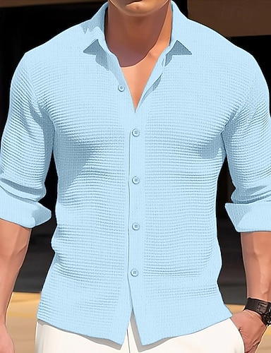 رجالي قميص قميص الوافل قميص غير رسمي زر حتى القميص أسود أبيض أزرق كاكي كم طويل سهل طوي الأماكن المفتوحة مناسب للحفلات ملابس موضة أناقة الشارع الحديث كاجوال