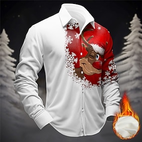 عيد الميلاد المجيد رجالي سباركلي لامع أضواء كريستمس قميص قميص رسمي زر حتى القميص كم طويل عارضة الازياء عطلة ملابس الحفلات والسهرات عشية العام الجديد الصيف الربيع الخريف قميص بياقة طباعة ثلاثية الأبعاد