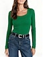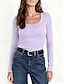 تي شيرت نسائي مزخرف بأكمام طويلة ياقة مربعة سادة عصرية بتدرج مقلوب التصميم الكلاسيكي أنيقة عادية مثالية للخروج يوميًا مطبوعة باللون الأزرق والأزرق السماوي والبرتقالي والبني والأخضر ربيع وخريف