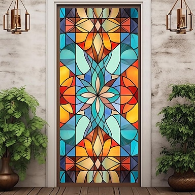 الزجاج الملون نجوم الباب يغطي جدارية ديكور الباب نسيج الباب الستار الديكور خلفية الباب راية القابلة للإزالة للباب الأمامي داخلي في الهواء الطلق غرفة المنزل الديكور مزرعة ديكور لوازم