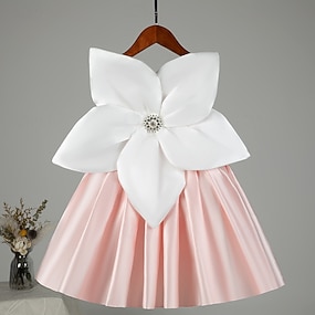 فستان حاملات الأزهار أطفال للفتيات فستان الأميرة أداء زفاف مناسب للحفلات أنيق جميل شبكة لون الصلبة بدون كم رقبة العمل أبيض وردي بلاشيهغ 4 سنوات +