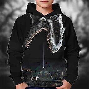 عيد الرعب للصبيان 3D ديناصور هوديي كم طويل الربيع الخريف موضة أناقة الشارع أطفال 4-12 سنة مع قبعة الأماكن المفتوحة فضفاض مناسب للبس اليومي عادي