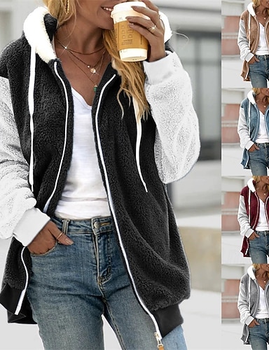 نسائي معطف شتوي سترة شيربا سترة هوديي الأماكن المفتوحة شارع مناسب للبس اليومي الخريف الشتاء عادية معطف عادي الدفء متنفس أنيق كاجوال جاكتس كم طويل سهل مع جيوب افتح السحاب أسود نبيذ رمادي