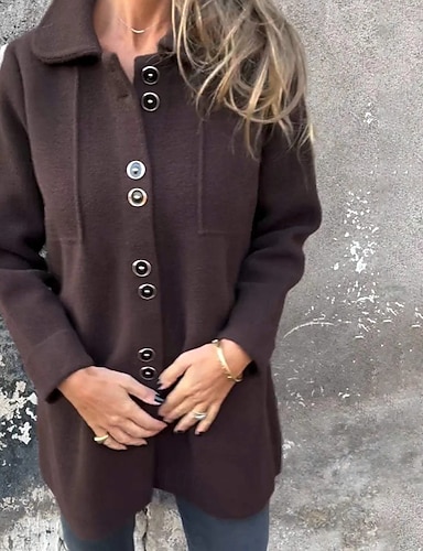 نسائي معطف شتوي مريح Buttons موضة سهل مناسب للعطلات مناسب للخارج صدر فردي عادية كرونيك عادي كم طويل ملابس خارجية أبيض كاكي كوفي الخريف الشتاء