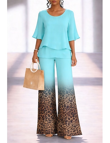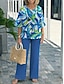 نسائي مجموعات السراويل نصف كم كم فراشة رقبة دائرية الرسم هندسي أنيق العطلة فضفاض مناسب للبس اليومي شاطئ أزرق أخضر كاكي للربيع والصيف فضفاض صالح