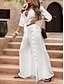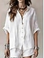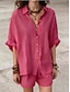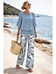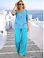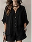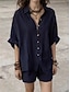 نسائي أطقم قطنية كتان مجموعات السراويل 3/4 الكم V رقبة لون الصلبة موضة أناقة الشارع فضفاض مناسب للبس اليومي الأماكن المفتوحة أزرق أسود أبيض للربيع والصيف فضفاض صالح