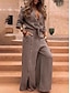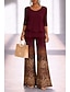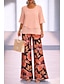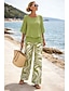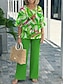 نسائي قميص مجموعات مستوحاة من الكتان طقم من قطعتين بنطال واسع الساق كم طويل رقبة عالية مدورة ورد رباط طباعة موضة أناقة الشارع يوميا فضفاض مناسب للبس اليومي أخضر ربيع & الصيف عادي