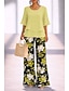 نسائي قميص مجموعات السراويل نصف كم رقبة دائرية ظل ورد الرسم طباعة أساسي مناسب للعطلات كاجوال / يومي عطلة نهاية الاسبوع أبيض أصفر أزرق فاتح الصيف عادي