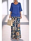 نسائي مجموعات السراويل نصف كم رقبة دائرية الرسم هندسي أنيق العطلة فضفاض مناسب للبس اليومي أزرق أزرق البحرية أرجواني الصيف عادي