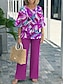 نسائي مجموعات السراويل نصف كم رقبة دائرية الرسم هندسي أنيق العطلة فضفاض مناسب للبس اليومي عطلة أزرق أرجواني برتقالي الصيف عادي