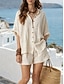 نسائي مجموعات السراويل توب بوليرو كم قصير V رقبة لون الصلبة مكشكش موضة أناقة الشارع فضفاض مناسب للبس اليومي الأماكن المفتوحة أزرق كاكي البيج الصيف عادي