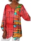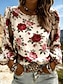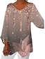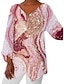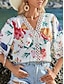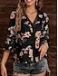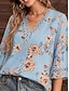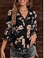 نسائي بلوزة طباعة ورد عتيق أنيق كاجوال 3/4 الكم V رقبة قمصان عادية مناسب للبس اليومي أزرق أسود وردي بلاشيهغ أحمر بني الصيف الربيع الخريف
