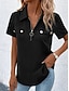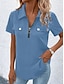 نسائي بلوزة Buttons لون الصلبة يوميا أنيق أساسي كم قصير Lapel قمصان عادية مناسب للبس اليومي أزرق أسود أبيض أرجواني برتقالي الصيف الربيع