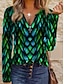 نسائي تي شيرت سحاب طباعة الرسم هندسي مجرد عتيق موضة أنيق كم طويل رقبة عالية مدورة قمصان عادية مناسب للبس اليومي أزرق أخضر الربيع الخريف