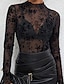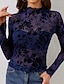 نسائي بلوزة شبكة ورد أنيق كم طويل رقبة عالية قمصان عادية مناسب للبس اليومي مناسب للعطلات مناسب للخارج أسود أزرق البحرية الصيف الربيع