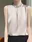 نسائي قميص أنيقة بلوزة من الساتان بلوزة مكشكش سهل نشيط أنيق بدون كم رقبة عالية قمصان عادية مناسب للبس اليومي مناسب للعطلات مناسب للخارج أسود أبيض شامبانيا وردي بلاشيهغ زهرة مغبرة الصيف الربيع