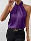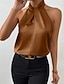 نسائي قميص أنيقة بلوزة من الساتان قميص من الحرير بدون ظهر سهل أنيق بدون كم الرقبة الرسن قمصان عادية مناسب للعطلات مناسب للخارج أسود أبيض جمل أرجواني بني الصيف الربيع