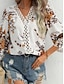 نسائي قميص بلوزة طباعة جلد نمر أنيق كاجوال 3/4 الكم V رقبة قمصان عادية مناسب للبس اليومي ليوبارد الصيف الربيع