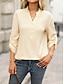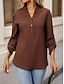 نسائي قميص قميص غير رسمي بلوزة Buttons سهل أنيق كلاسيكي الحديث كم طويل V رقبة قمصان عادية مناسب للبس اليومي مناسب للعطلات مناسب للخارج أسود أبيض بني مشمشي الصيف الربيع