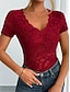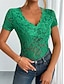 نسائي تي شيرت تي الأعلى دانتيل بقع سهل موضة أنيق كلاسيكي كم قصير V رقبة قمصان عادية مناسب للبس اليومي مناسب للخارج عطلة نهاية الاسبوع أزرق أسود أبيض أخضر داكن أخضر الصيف الربيع