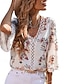 نسائي بلوزة دانتيل بقع ورد بوهيميا عتيق كاجوال 3/4 الكم V رقبة قمصان عادية مناسب للبس اليومي مناسب للعطلات أزرق أسود أبيض وردي بلاشيهغ أحمر الصيف الربيع الخريف
