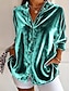 نسائي قميص أنيقة بلوزة من الساتان بلوزة فراغ خارجي Buttons سهل أنيق رسمي كم طويل قبعة القميص قمصان عادية عمل مناسب للعطلات مناسب للخارج أسود أبيض نبيذ الربيع الخريف
