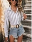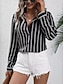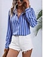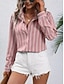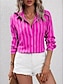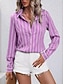 نسائي قميص بلوزة بقع Buttons مخطط أنيق العطلة الغربي كم طويل قبعة القميص قمصان عادية مناسب للبس اليومي مناسب للعطلات مناسب للخارج أزرق أسود أبيض وردي بلاشيهغ أرجواني الصيف الربيع