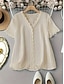 نسائي قميص صيفي قميص غير رسمي زر حتى القميص بلوزة Buttons غير المتماثلة لون الصلبة سهل أنيق يوميا كم قصير V رقبة قمصان عادية مناسب للعطلات ملابس الشاطئ ملابس العطلة أبيض الصيف الربيع