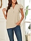 نسائي بلوزة دانتيل لون الصلبة أنيق كاجوال كم قصير V رقبة قمصان عادية مناسب للبس اليومي أزرق أسود أبيض كاكي الصيف الربيع الخريف