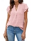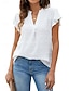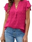 نسائي بلوزة كشكش لون الصلبة أنيق كاجوال كم قصير V رقبة قمصان عادية مناسب للبس اليومي أزرق أسود أبيض وردي بلاشيهغ فوشيا الصيف الربيع