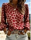 نسائي بلوزة طباعة ورد جلد نمر أنيق كاجوال كم طويل رقبة عالية مدورة قمصان عادية مناسب للبس اليومي أزرق أسود أصفر وردي بلاشيهغ أحمر الربيع الخريف