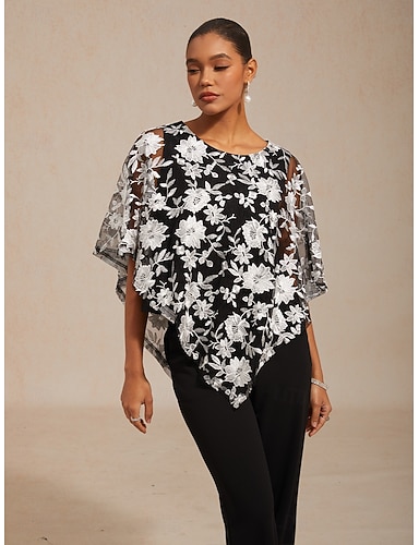 نسائي بلوزة قمصان الدانتيل دانتيل مطرز ورد أنيق نصف كم كم جناج الخفاش رقبة عالية مدورة مناسب للبس اليومي ضيف حفل زفاف أسود الصيف الربيع الخريف