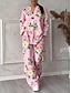 نسائي مجموعات السراويل 3/4 الكم V رقبة ورد طباعة العطلة موضة مناسب للبس اليومي عطلة مناسب للعطلات أسود وردي بلاشيهغ الصيف عادي