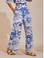نسائي بلوزة مجموعات السراويل كم طويل مرتفعة ورد رباط طباعة نشيط موضة الأماكن المفتوحة مناسب للخارج أزرق برتقالي أخضر الخريف عادي