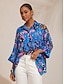 نسائي قميص بوهو يهز كتفيه مطرز ورد زهور كاجوال بوهو كم طويل جرس غير متماثل قمصان عادية مناسب للبس اليومي عمل عيد الحبّ أزرق كل الفصول