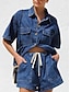 نسائي مجموعات السراويل توب بوليرو كم قصير قبعة القميص سهل موضة أناقة الشارع فضفاض مناسب للبس اليومي الأماكن المفتوحة أزرق أسود أزرق البحرية الصيف عادي