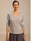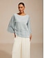 نسائي بلوزة قمم متأنق ميتالك لون الصلبة أنيق 3/4 الكم جرس رقبة عالية مدورة قمصان عادية مناسب للبس اليومي ضيف حفل زفاف أزرق سماوي الصيف الربيع الخريف
