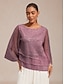نسائي بلوزة بلوزات شيفون مطوي متعدد الطبقات ميتالك أنيق 3/4 الكم جرس رقبة عالية مدورة مناسب للبس اليومي ضيف حفل زفاف بنفسجي فاتح الصيف الربيع الخريف