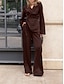 نسائي طقم من قطعتين مجموعات السراويل كم طويل V رقبة سهل التفاف أنيق موضة أناقة الشارع فضفاض مناسب للبس اليومي الأماكن المفتوحة أسود بني الصيف عادي
