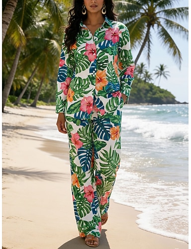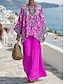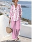 نسائي قميص بلوزة بنطال واسع الساق كم طويل قبعة القميص ورد ألوان متناوبة طباعة موضة أناقة الشارع يوميا فضفاض مناسب للبس اليومي وردي بلاشيهغ ربيع & الصيف عادي
