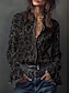 نسائي قميص بلوزة قمصان الدانتيل سحاب ورد الرسم جلد نمر أنيق أساسي كلاسيكي كم طويل مرتفعة قمصان عادية مناسب للبس اليومي مناسب للعطلات مناسب للخارج أسود الصيف الربيع الخريف