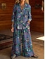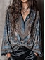 نسائي قميص قميص غير رسمي زخرفات عتيق أنيق كلاسيكي كم طويل V رقبة قمصان عادية مناسب للبس اليومي مناسب للعطلات مناسب للخارج أزرق الربيع الخريف